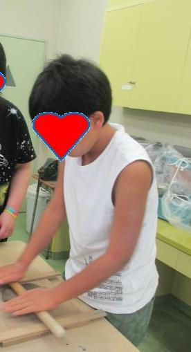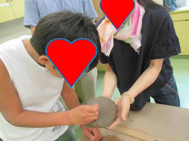 先生に教わりながら丸い粘土を力をこめてコネコネ★のばーすのばーす★